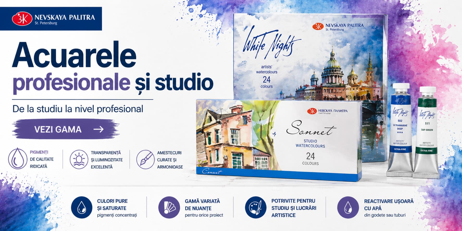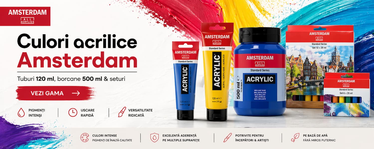 Magazin online de materiale pentru artă potrivite atât pentru începători, cât și pentru artiști experimentați. Descoperă acuarele, culori acrilice, pensule, markere, blocuri de desen și produse pentru hobby creativ.