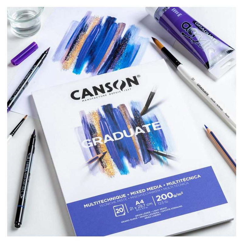 Gama Graduate de la Canson este orientată spre învățare și dezvoltarea tehnicii, oferind suporturi versatile pentru desen și mixed media.