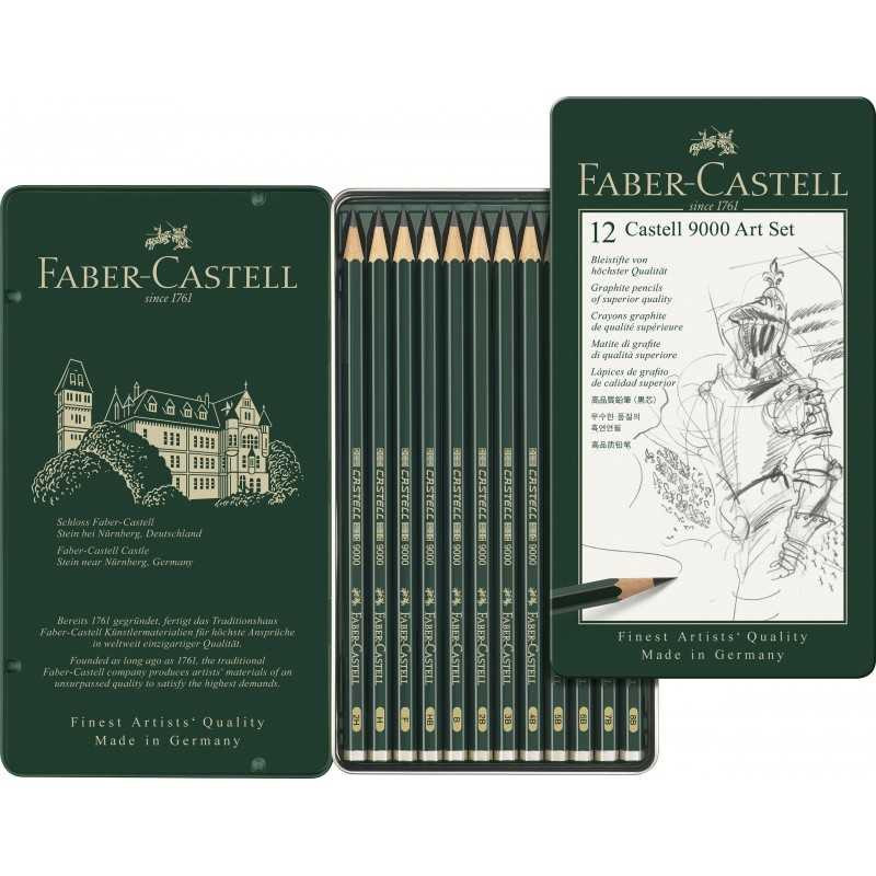 Setul de 12 creioane grafit Faber-Castell 9000 oferă o gamă echilibrată de durități, de la 8B la 2H, potrivită pentru realizarea schițelor, desenelor artistice și exercițiilor de control al valorilor tonale. Intervalul de durități permite trecerea de la linii fine și construcție precisă la umbre dense și contraste puternice.