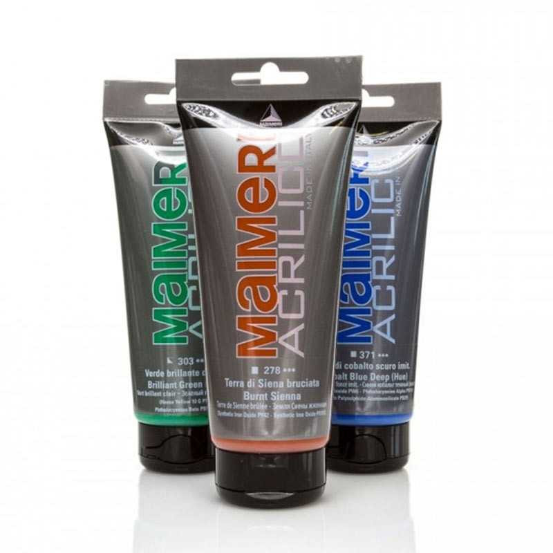 Culorile acrilice Acrilico fac parte din gama Maimeri, apreciată pentru echilibrul dintre intensitatea culorii și ușurința în aplicare. Vopseaua are consistență cremoasă, acoperire uniformă și permite realizarea de straturi opace sau efecte mai transparente prin diluare cu apă.