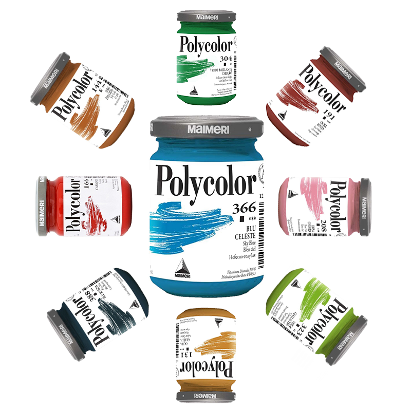 Gama Polycolor de la Maimeri include culori acrilice vinilinice profesionale, recunoscute pentru concentrația ridicată de pigment și consistența echilibrată, care permite aplicarea uniformă și control precis al culorii. Formula pe bază de rășini vinilice oferă o peliculă rezistentă, flexibilă și stabilă după uscare.