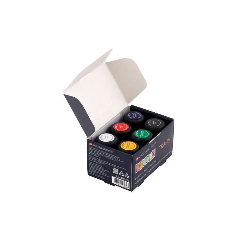 Setul de 6 culori textile Decola este realizat pe bază de dispersie acrilică apoasă și este conceput pentru decorarea materialelor din bumbac sau mătase. După uscare, culorile formează o peliculă elastică, care păstrează flexibilitatea țesăturii și rezistența culorii în timp.