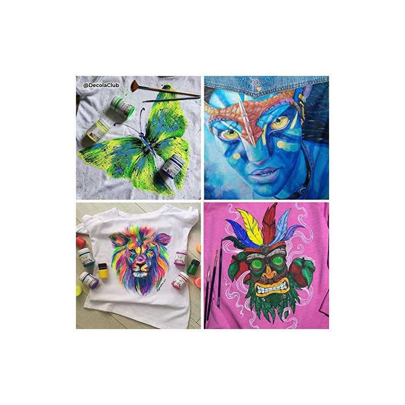 Setul de 9 culori textile Decola este realizat pe bază de dispersie acrilică apoasă și este conceput pentru decorarea materialelor din bumbac sau mătase. După uscare, culorile formează o peliculă elastică, care păstrează flexibilitatea țesăturii și stabilitatea culorii în timp.