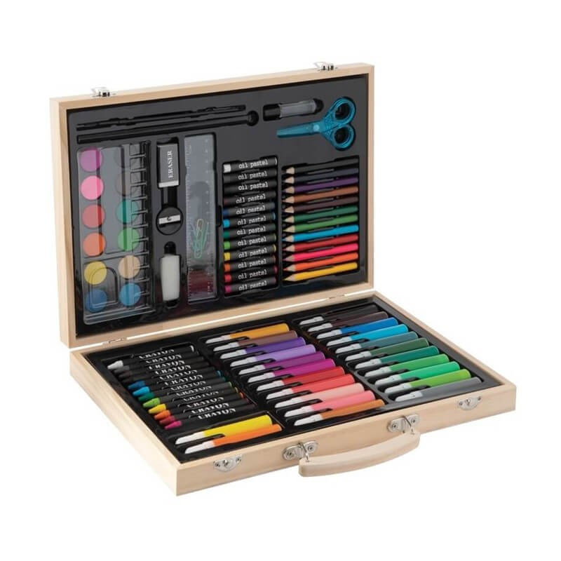 Set pictura si desen cu 86 de piese in cutie de lemn pentru copii si adulti creativi. Cutie de lemn rezistenta, perfecta pentru pastrarea si organizarea tuturor pieselor, astfel incat sa le ai intotdeauna la indemana.