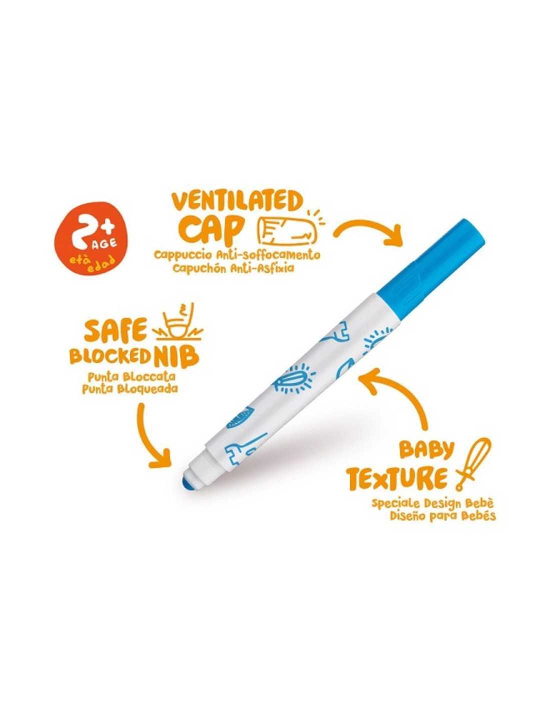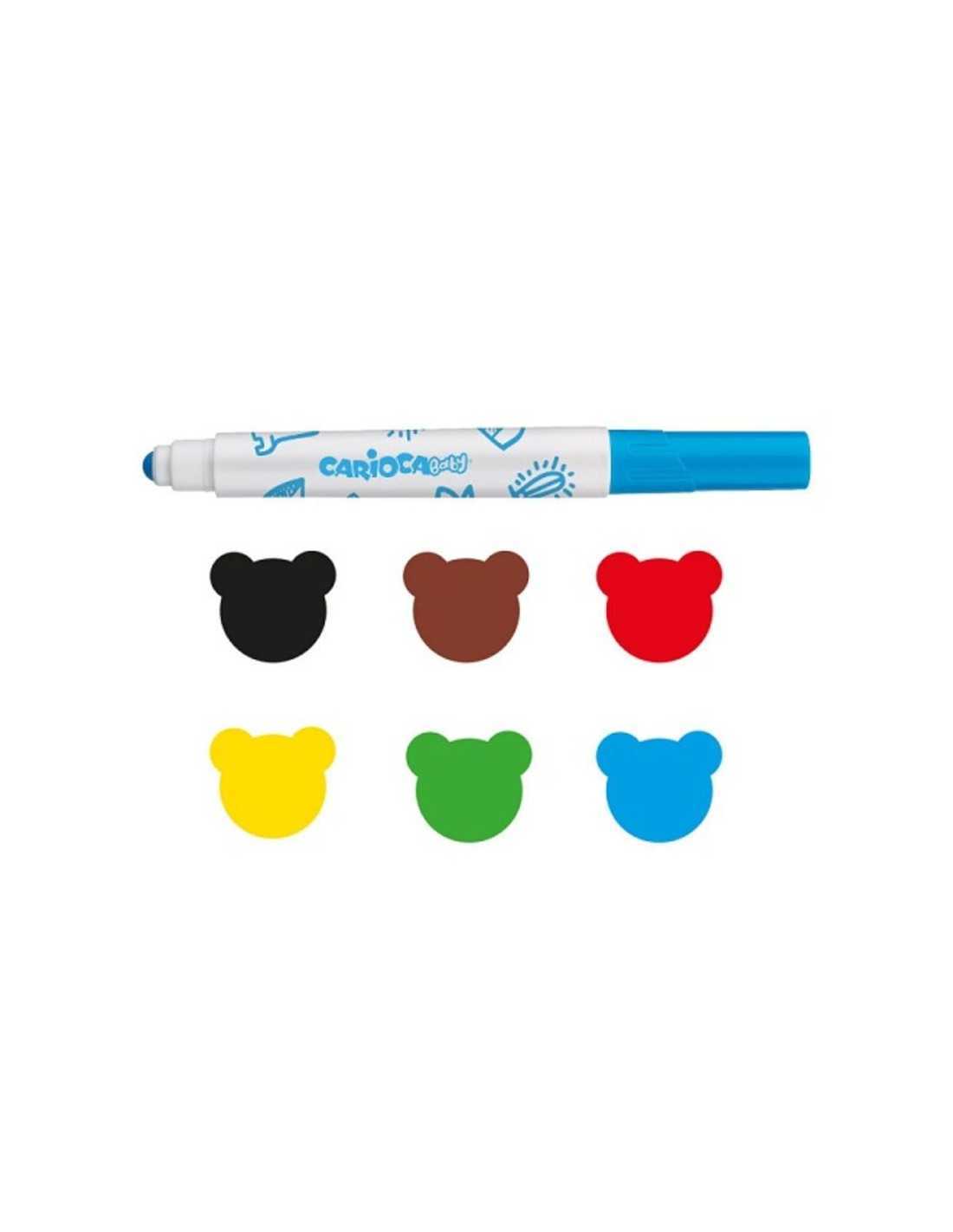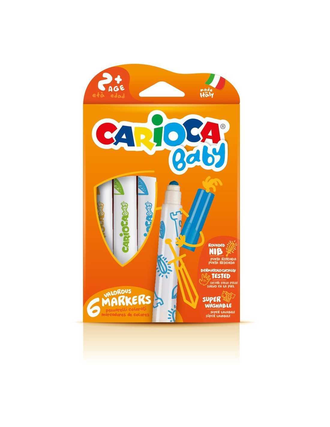 Carioci pentru copii, Carioca Baby 2 ani, 6 culori / set, carioci care se sterg cu apa. Design unic, siguranta in utilizare, forma ergonomica pentru mainile mici ale copiilor.