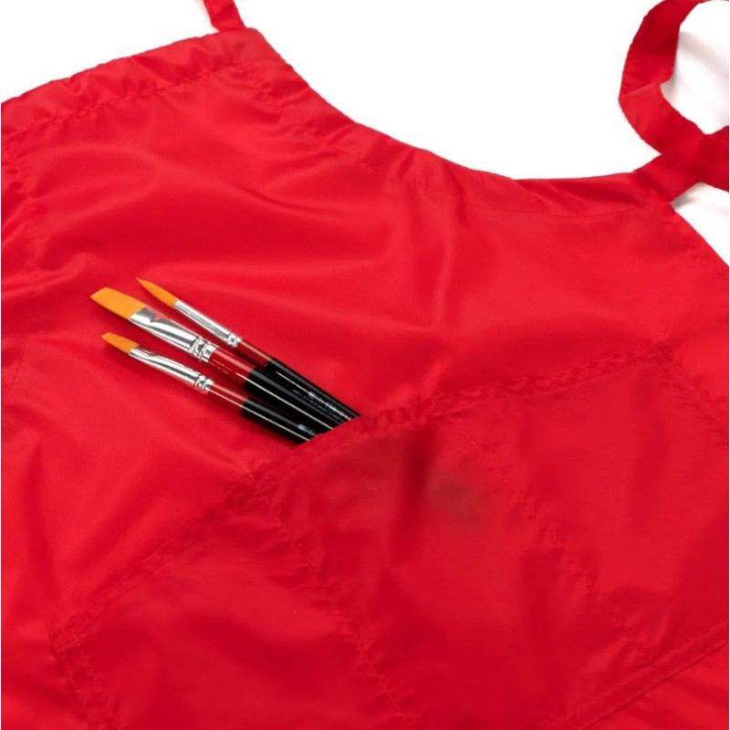 Un element util este buzunarul mare, împărțit în trei compartimente, unde pot fi păstrate pensule, bureți sau alte unelte mici. Acest detaliu ajută la organizarea spațiului de lucru și la acces rapid la materiale în timpul activității.