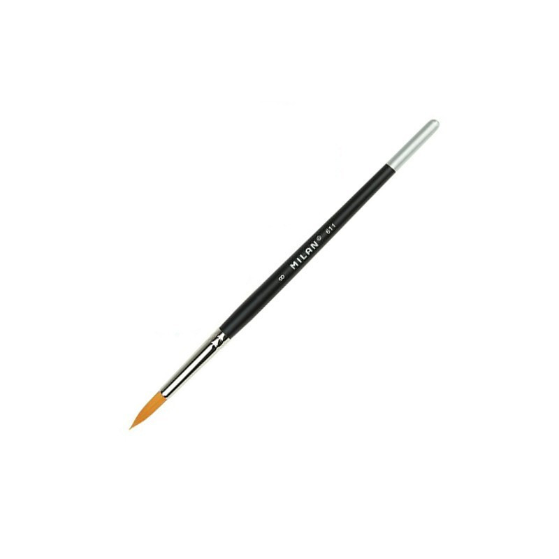 Pensula MILAN Premium Synthetic seria 611 cu vârf rotund este realizată din fibre sintetice de poliester, netede și rezistente, concepute pentru aplicarea uniformă a culorilor pe bază de apă. Amestecul de filamente cu grosimi diferite oferă flexibilitate bună și control precis al tușei.