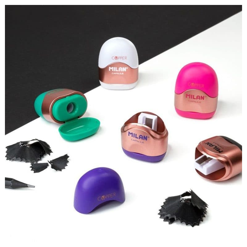 Ascuțitoarea Milan Copper este concepută pentru ascuțirea creioanelor subțiri, fiind potrivită pentru utilizare în școală, birou sau acasă. Include un recipient integrat care colectează resturile, menținând spațiul de lucru curat.