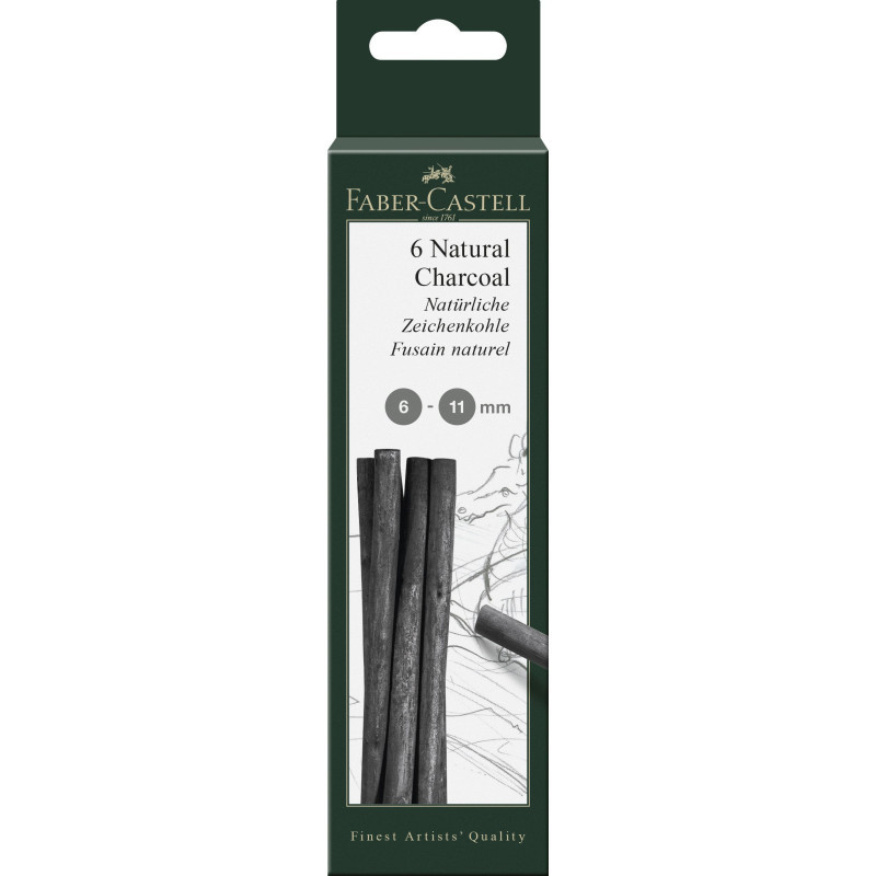 Față de varianta Basic, acest set adaugă batoanele de cărbune natural Faber-Castell, care extind posibilitățile tehnice către contraste mai puternice, studii de volum și abordări expresive în desen.